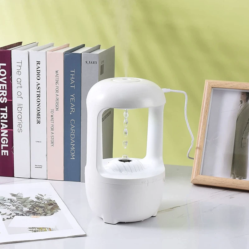 مرطوب کننده Anti Gravity از اپتیک برای ایجاد توهم ضد جاذبه استفاده می کند، که باعث می شود قطرات آب به آرامی به سمت بالا جریان پیدا کنند، در حالی که درخشش محیط و صدای تسکین دهنده آب جاری تولید می کند. تجربه جالبی را در اختیار شما قرار می دهد. رطوبت ساز Anti Gravity با 2 حالت طراحی شده است: نور و خواب. هنگامی که چراغ ها روشن می شوند، می توانید جریان آب را به طور جادویی به سمت عقب ببینید. هنگامی که می خواهید بخوابید، می توانید کلید را لمس کنید، چراغ خاموش می شود و محیط خواب خوبی برای شما فراهم می کند. مرطوب کننده های اتاق خواب با عملکرد خاموش شدن خودکار طراحی شده اند. دارای سنسور هوشمند سطح آب داخلی است که با تمام شدن آب به طور خودکار کار را متوقف می کنند. این به میزان زیادی از رطوبت ساز محافظت می کند و استفاده از آن را طولانی می کند. (توجه: آداپتور باید از 5V2A پشتیبانی کند) 2 راه برای اضافه کردن آب وجود دارد. روش اول باز کردن مخزن و پر کردن آن تا سطح آب است. راه دیگر این است که شما می توانید مستقیماً از سمت خروجی قطره مقدار مناسبی از بطری آب را تزریق کنید
