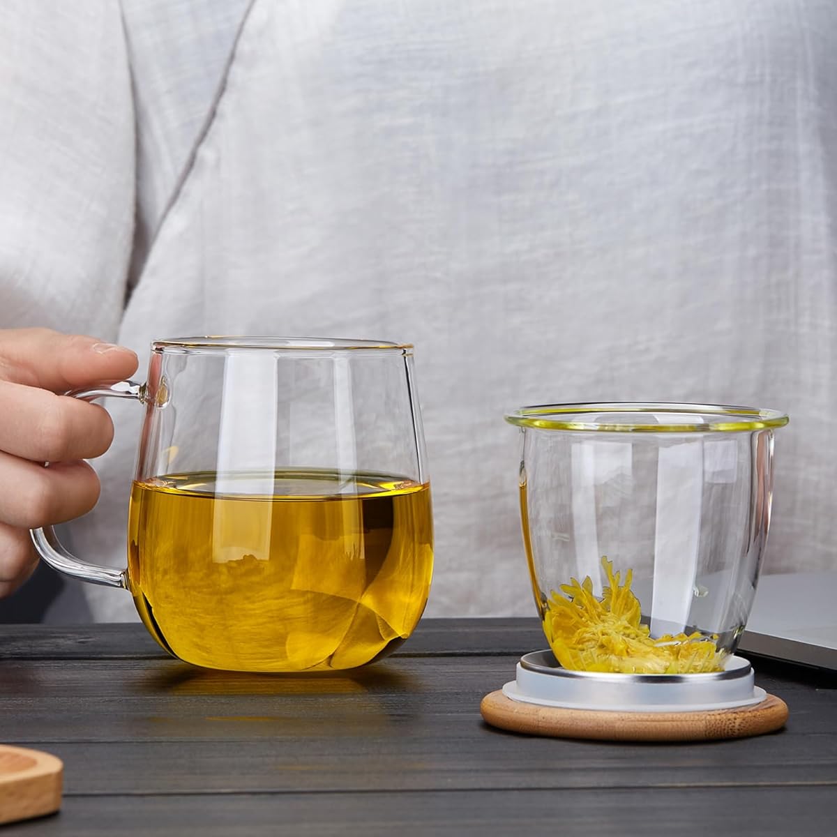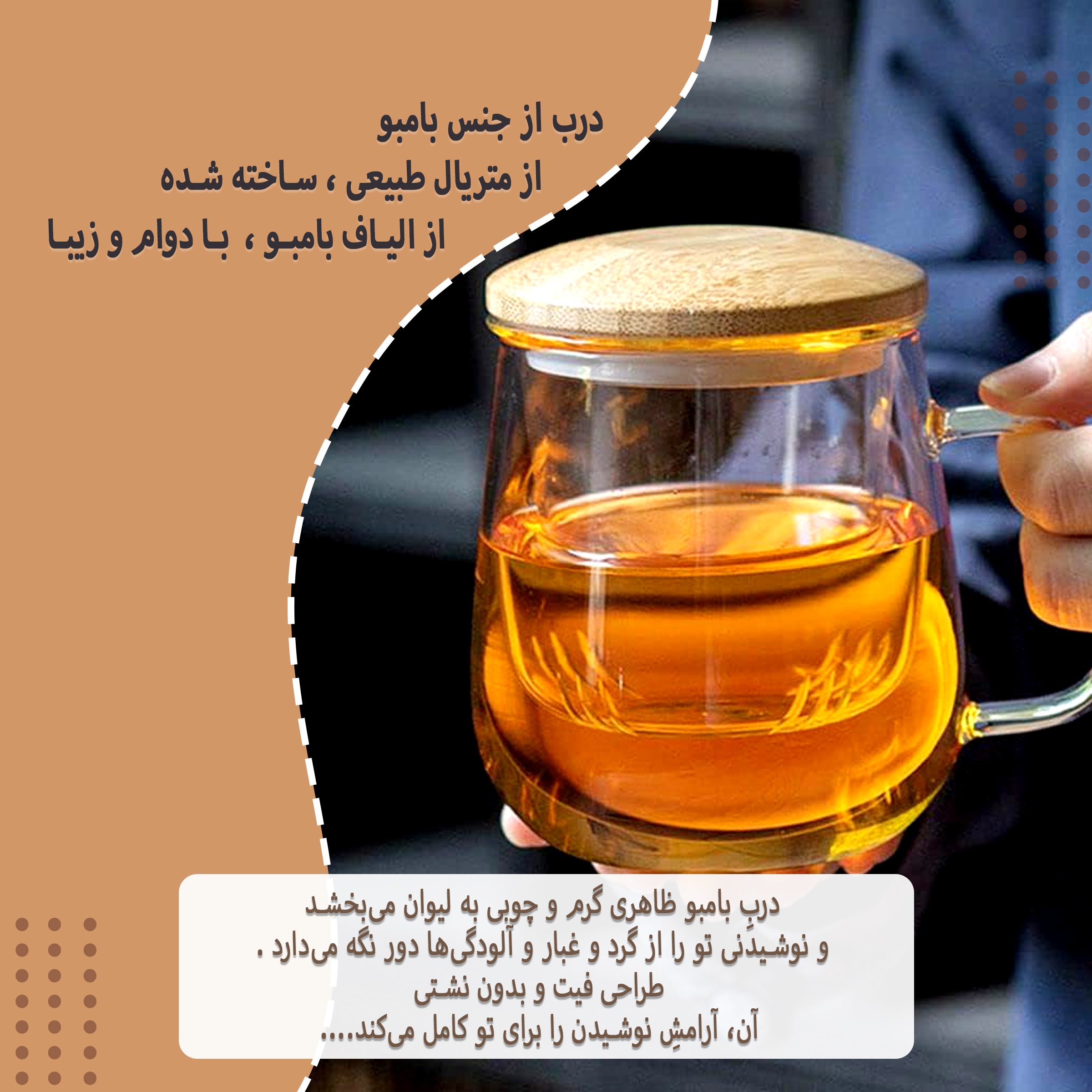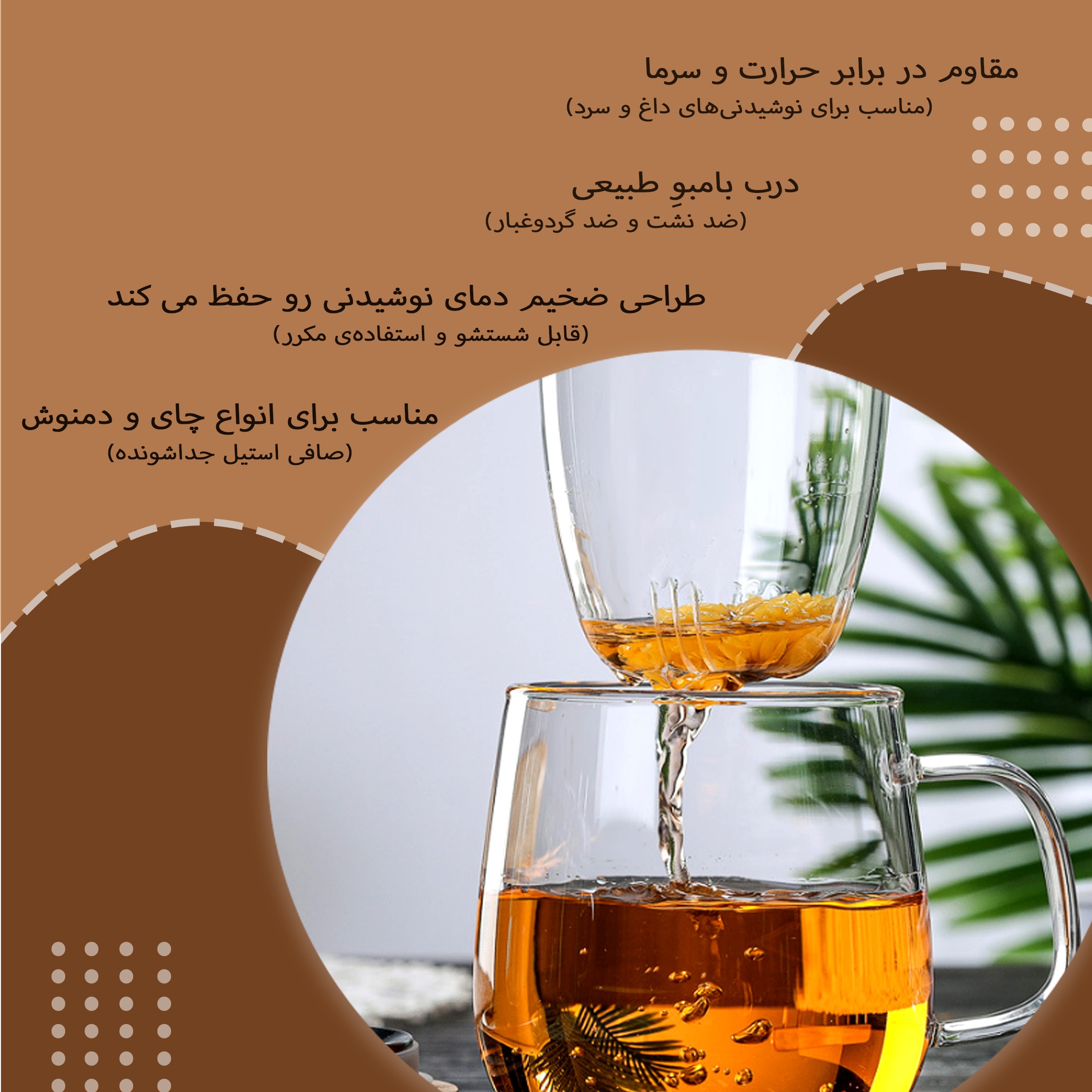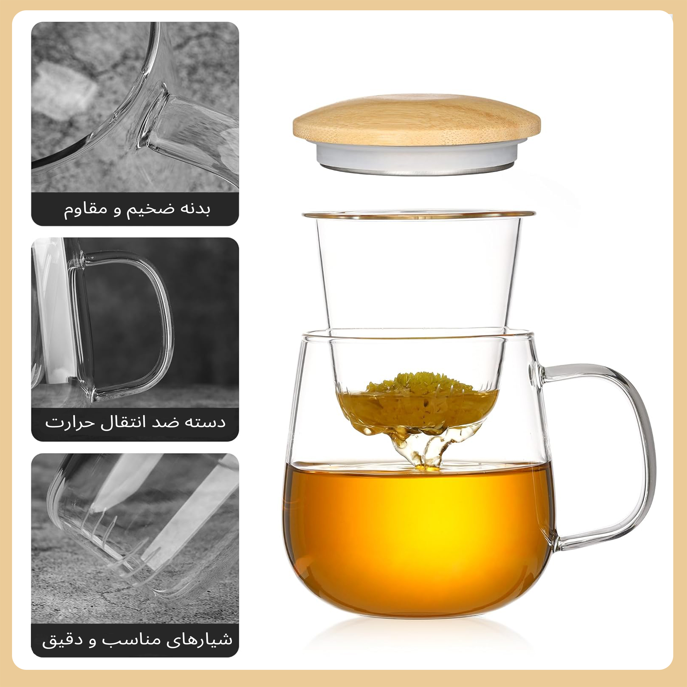 ماگ دمنوش پیرکس با درب بامبو، ترکیبی از طراحی مینیمالیستی و جنسهای باکیفیت طبیعی را به شما ارائه میدهد. بدنه شفاف پیرکس به شما امکان میدهد تا فرآیند دم کشیدن دمنوش را مشاهده کنید و از زیبایی بصری نوشیدنی خود لذت ببرید. درب بامبو، علاوه بر ظاهری زیبا، به نگهداری حرارت و حفظ عطر دمنوش کمک میکند. بدنه این ماگ از پیرکس ساخته شده که نه تنها در برابر حرارت مناسب است، بلکه به حفظ طعم طبیعی دمنوش و چای کمک میکند. همچنین توری پیرکس قابل جدا شدن است و شستشوی آن بسیار آسان میباشد. این ویژگیها باعث میشوند که این ماگ هم از نظر کیفیت و هم از نظر کارایی در سطح خوبی قرار بگیرد. ماگ دمنوش پیرکس با درب بامبو به شما امکان میدهد که هر روز یک فنجان دمنوش یا چای با کیفیت و طعم عالی دم کنید. با ظرفیت ۵۰۰ میلیلیتر و طراحی زیبا، این ماگ مناسب استفاده در خانه، محل کار یا حتی هدیه دادن به دوستان و عزیزان است. همچنین، با درب بامبو و جنس پیرکس، این ماگ کاملاً بهداشتی بوده و مناسب برای استفاده مکرر میباشد.