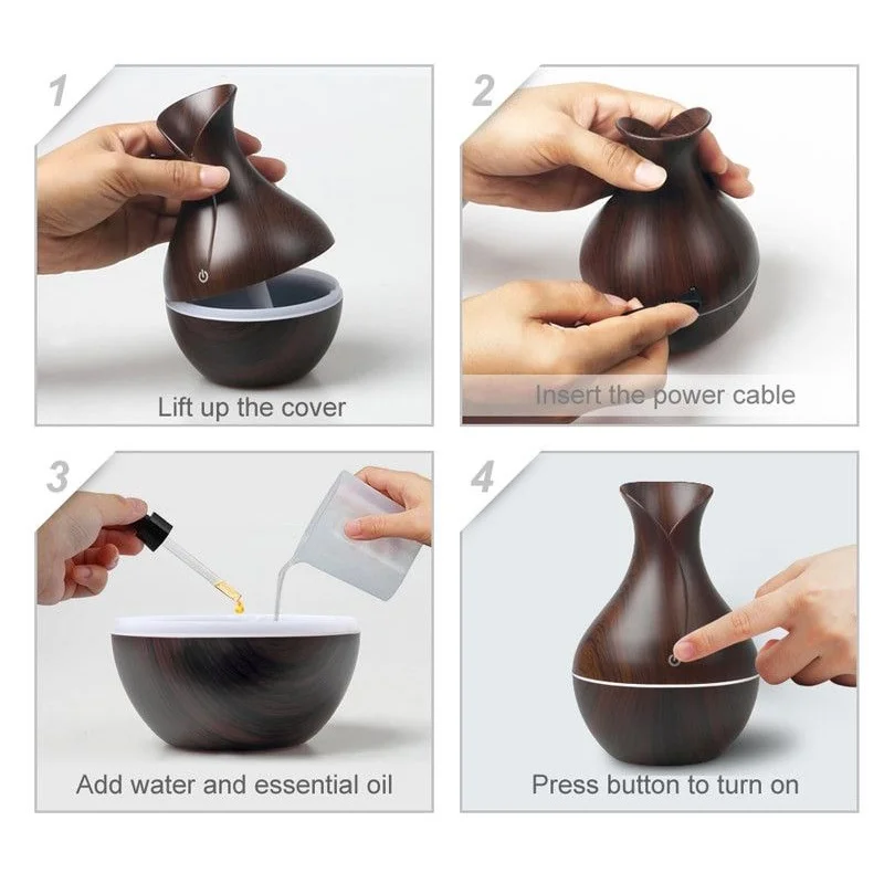 مخزن بخور را باز کرده و درون آن را از آب پر کنید .سپس مخزن را به دستگاه وصل کرده و یک سر سیم رابط درون جعبه را به پورت یو اس بی وصل کرده و سر دیگر را به دستگاه متصل می کنیم.اگر یک بار دکمه پاور دستگاه را لمس کنید، حالت بخور مداوم همراه با رقص نور ایجاد می شود. بار دیگر، رقص نور به همراه حالت بخور متناوب یا ۳ ثانیه یک بار ایجاد می شود.اگر دوباره دکمه را لمس کنید، حالت بخور مداوم بدون رقص نور ایجاد می شود و بار دیگر دستگاه خاموش می شود.