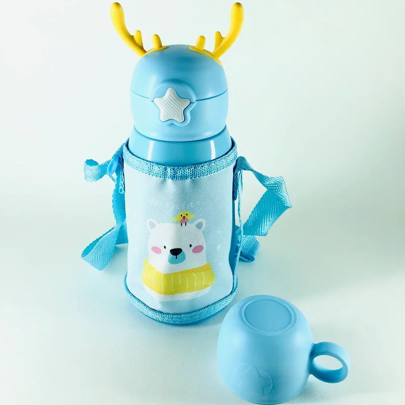 این فلاسک از استیل ساخته شده است دارای طرح و رنگ جذابی است و برای نوشیدنی های گرم و سرد مناسب است. این فلاسک استیل درب آن دارای دو شاخ گوزن می باشد و درب آن به کمک دکمه ستاره ای باز می شود.این فلاسک دارای دو سری متفاوت می باشد یکی نی دار و دیگری به صورت فشاری است. همچنین این فلاسک دارای یک فنجان کوچک و یک کیف زیپ دار می باشد که دارای بند قابل تنظیم می باشد و می توان به دو صورت دستی و دوشی استفاده کرد.