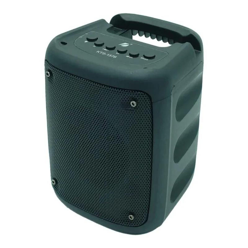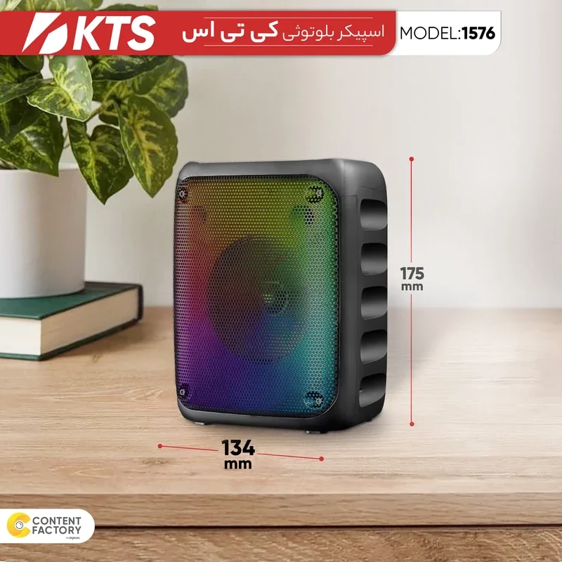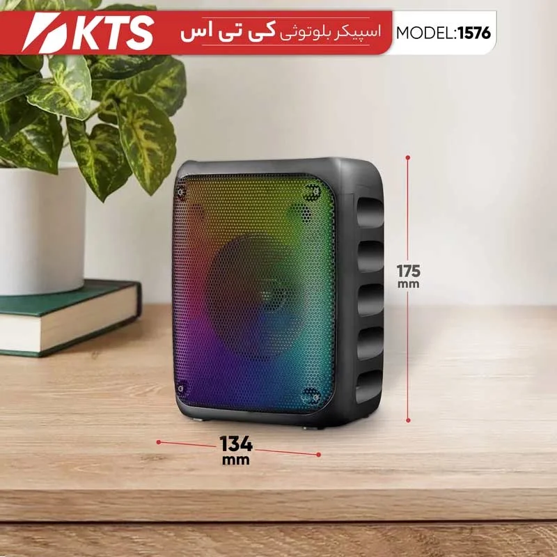 اسپیکر بلوتوثی قابل حمل مدل KTS 1576، یکی از محصولات شرکت KTS است که با توجه به ابعاد و وزن نسبتا مناسب خود میتواند در هر جایی لذت گوش دادن به موسیقی را برای کاربران فراهم کند. قسمت جلویی این اسپیکر میزبان درایو آن به همراه نورپردازی RGB است تا این اسپیکر بتواند صدا را به صورت مستقیم و با بیشترین کیفیت به گوش کاربران برساند و جلوههای بصری بسیار زیبایی به آنها ارائه کند. پورتهای اتصال باسیم این اسپیکر در قسمت پشتی آن قرار دارند و به هیچ عنوان زیبایی قسمت جلویی این محصول را دچار اختلال نمیکنند. کلیدهای کنترل موسیقی و صدا هم در قسمت بالایی اسپیکر بلوتوثی KTS 1576 قرار دارند و دسترسی به آنها کار دشواری به نظر نمیرسد. درایو اصلی KTS 1576 قابلیت ارائه توان خروجی حداکثر 10 وات را در بازه فرکانسی 100 هرتز الی 20 کیلوهرتز ارائه میکند تا بلندی و شفافیت صدای نسبتا مناسبی را هنگام گوش دادن به موسیقی از این اسپیکر شاهد باشیم.تامین انرژی این اسپیکر نیز برعهده باتری 1500میلیآمپر ساعتی است که از شارژدهی مناسبی نسبت به بلندی صدا برخوردار است.