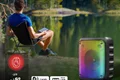 صدای اسپیکر خوبه و باکیفیته و در بالاترین حالت حدودا یه فضای ۸۰ متری رو راحت جوابگو هست فقط حواستون باشه کیفیت فایل خوب باشه و صدای گوشیتونم بعد از وصل زیاد کنید. اگه چراغش خاموش کنید با صدای معمولی ۶ ساعت جوابگوئه و اگه چراغ روشن کنید حدودا ۳ ساعت. ۵ ساعت طول میکشه که فول شارژ بشه و بعد از شارژ چراغ قرمز پشتش خاموش میشه. حتما یه کابل aux هم بگیرید برای اتصال به تلوزیون یا لپ تاپ یا دستگاه های دیگه. برای اتصال به بلوتوث یا aux از دکمه m کمک بگیرید. میکروفون امتحان نکردم. انشاءالله مفید بوده باشه.